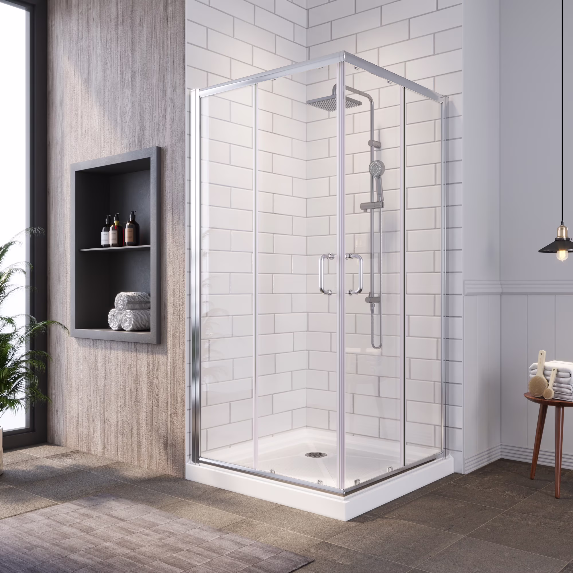 El resultado es una mampara funcional, cómoda y estéticamente integrada en el baño.